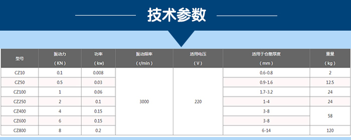 倉(cāng)壁振動(dòng)器產(chǎn)品規(guī)格參數(shù)表:
